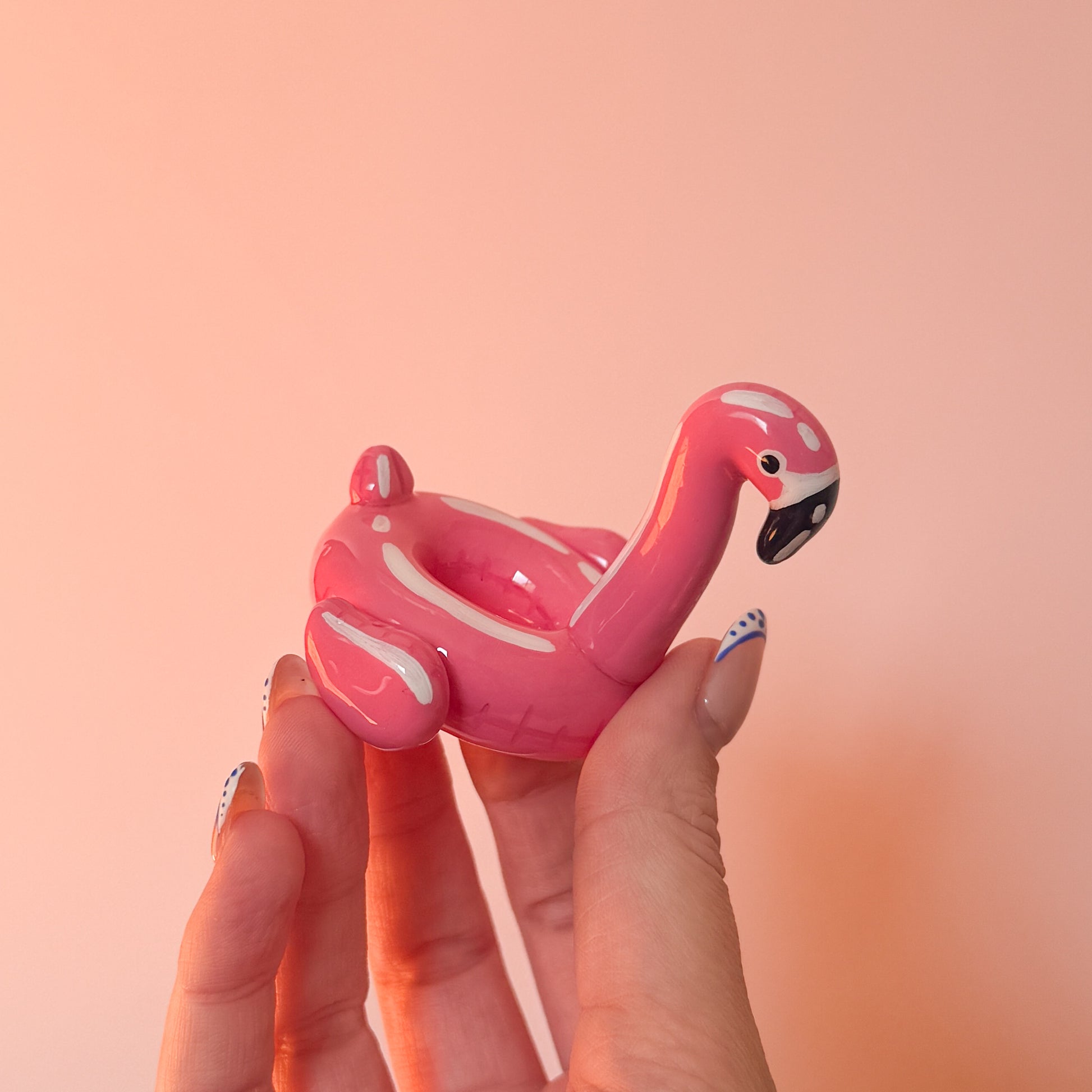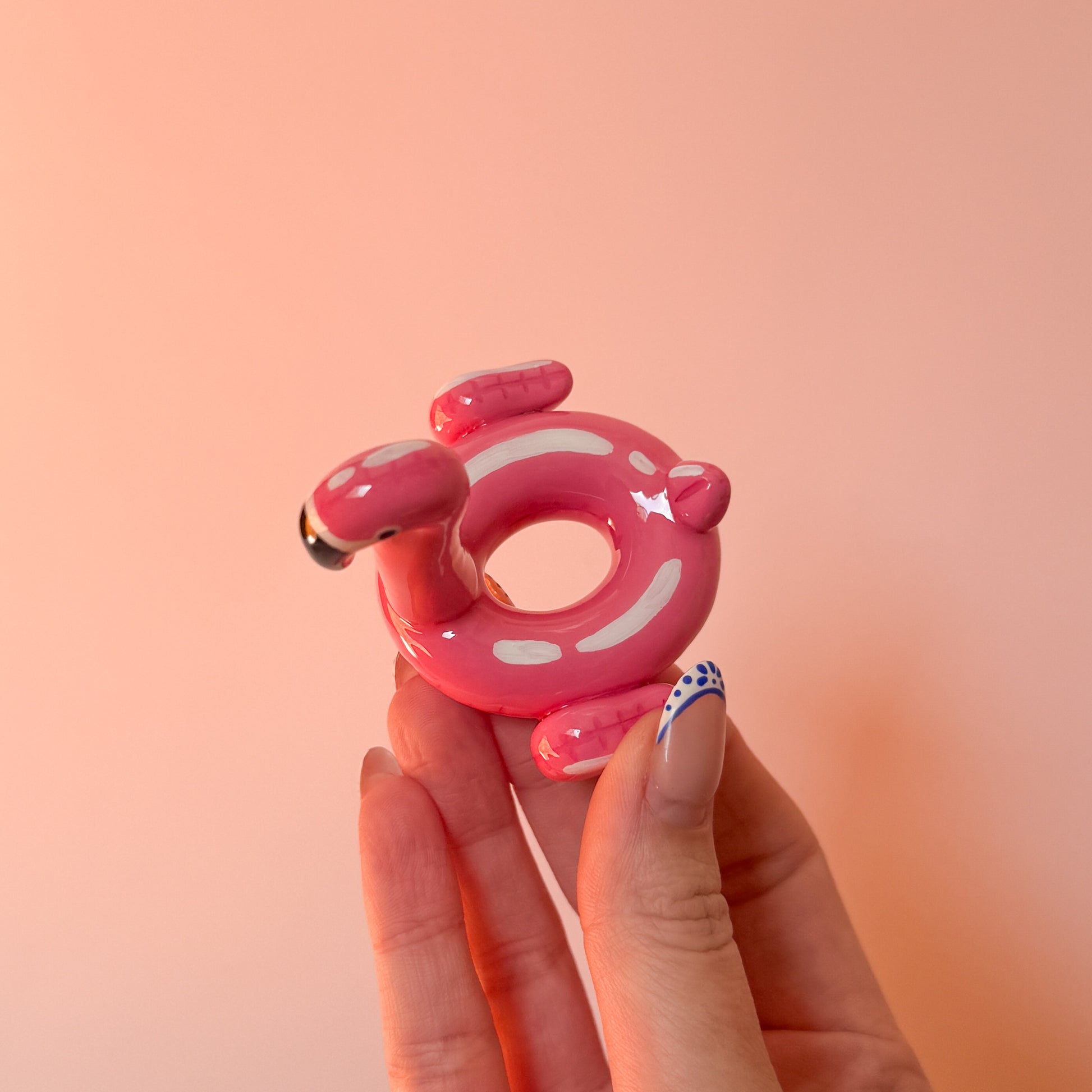 All pool floatie ring holders are handmade out of polymer clay, painted with acrylic paint and sealed with resin for a beautiful shiny finish.